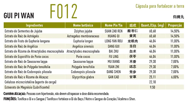 F012 Gui Pi Wan 100 Cápsulas - Fitoki