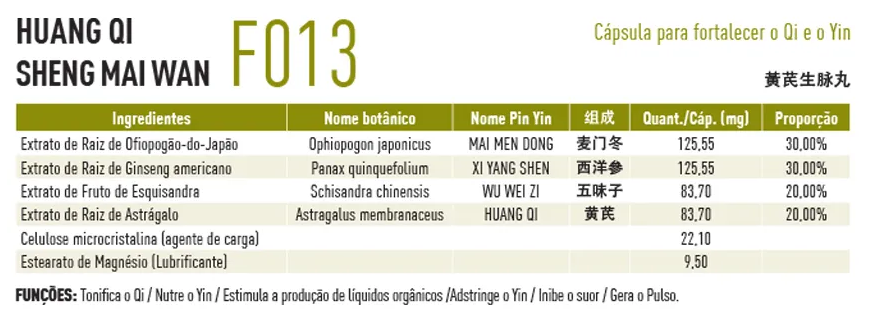 F013 Huang Qi Sheng Mai Wan 100 Cápsulas - Fitoki