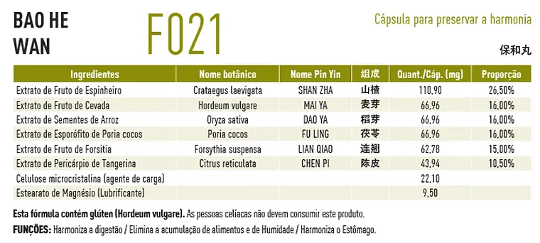F021 Bao He Wan 100 Cápsulas - Fitoki