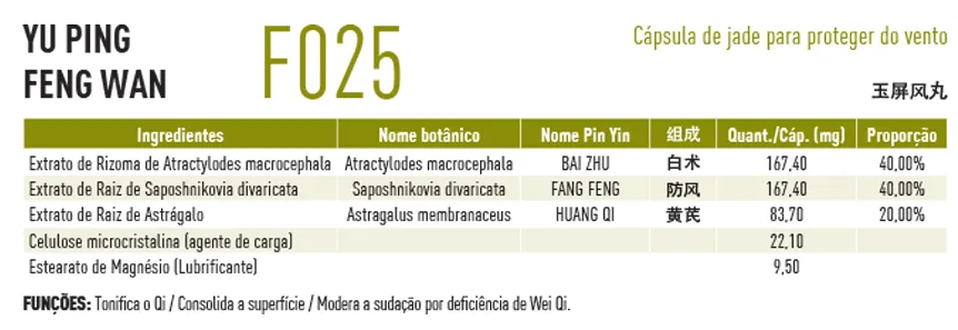 F025 Yu Ping Feng Wan 100 Cápsulas - Fitoki