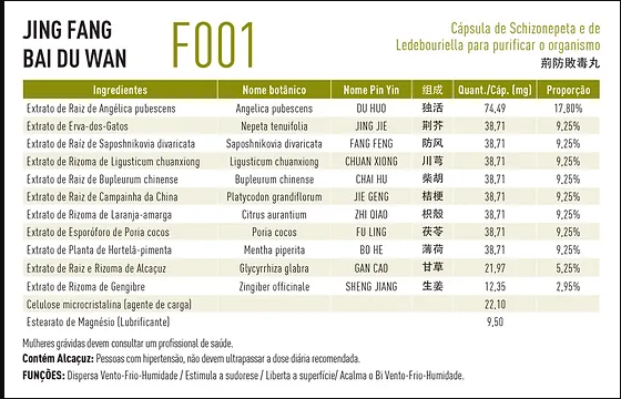F001 Jing Fang Bai Du Wan 100 Cápsulas - Fitoki