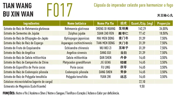 F017 Tian Wang Bu Xin Wan 100 Cápsulas - Fitoki